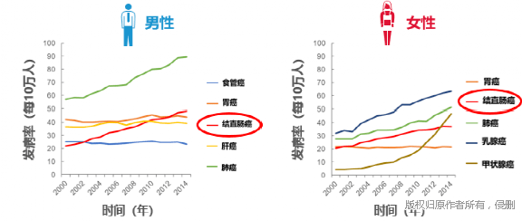 ▲结直肠癌发病率越来越高